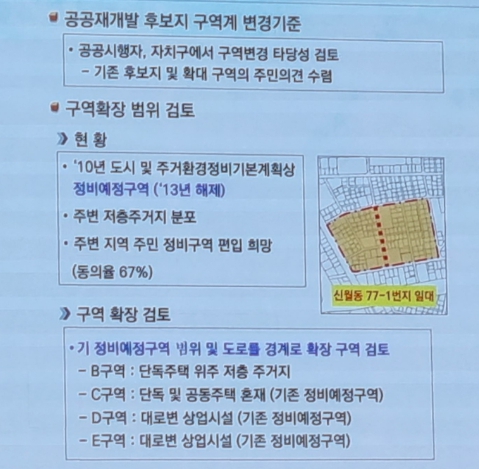 지난 2023년 6월 28일에 열렸던 LH주관 주민설명회에서 구역확장에 대한 설명이 있었습니다. 평일 오후에 진행한 설명회였지만 많은 분들이 참석을 하며 공공재개발에 대한 열기를 확인할 수 있었습니다.